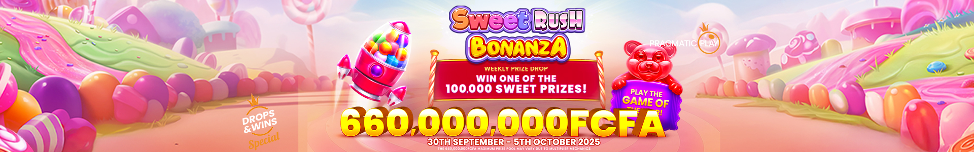 Play Sweet Rush Bonanza and be the one to win multiple prizes.