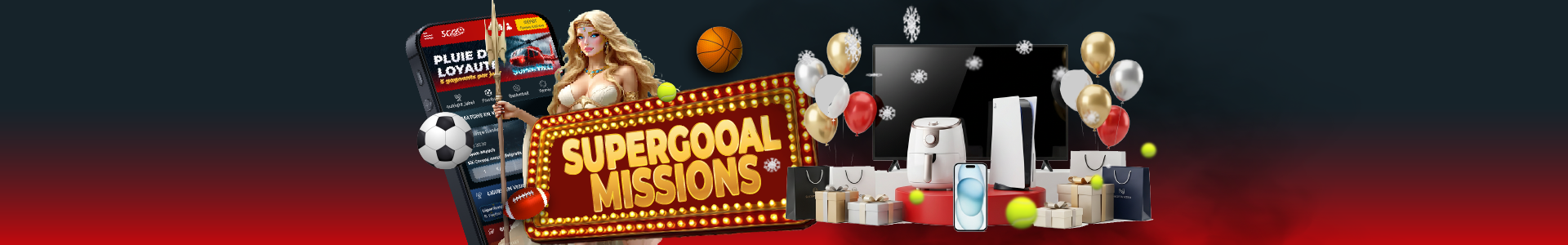 Lancez-vous dans la Mission Supergooal et transformez chaque pari en aventure ! Jouez à vos jeux préférés, relevez des défis palpitants et grimpez au classement pour tenter de remporter des prix exceptionnels. Plus vous terminez de missions, plus vos récompenses sont importantes : c’est votre aventure, votre victoire !